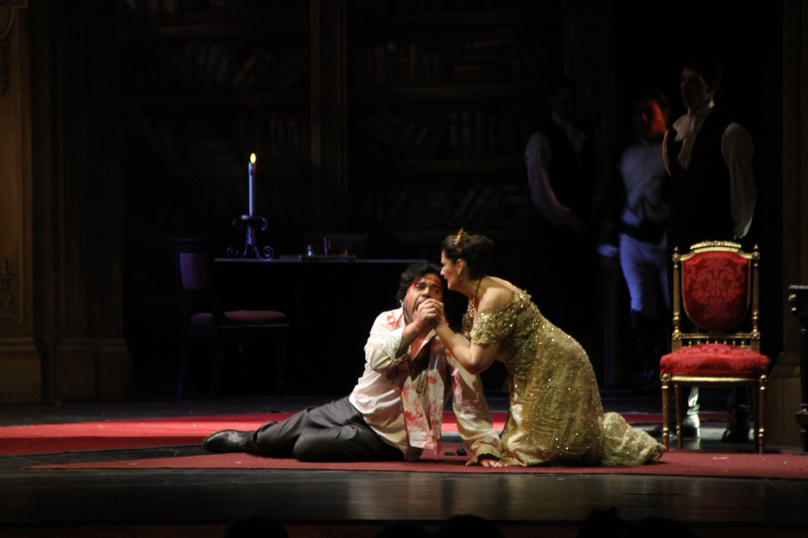 Toda la estructura escenográfica, trabajada por Christian Prego, daba un efecto tridimensional, creaba distintos climas en las escenas. Incluso, lucían numerosos detalles como en la representación del tedeum, con la imagen de la virgen o la escultura del ángel de la prisión romana en donde ejecutan al protagonista. Cada espacio era expuesto con sumo cuidado y previsión. El otro punto fuerte fue en lo musical, la Orquesta Sinfónica de la UNSJ, encabezada por Emanuel Sifert, brilló completamente. Fue quien marcó los ritmos, la acción, pintó y acompañó la dramatización de los personajes. Por momentos, se creaban situaciones de gran impacto sonoro, en las escenas claves, del primer y segundo acto, como cuando Tosca trata de hacer justicia y se defiende de Scarpia, clavando el puñal en su pecho. O en el fusilamiento a Mario, donde los timbales de la percusión sirvieron de efecto sonoro para el disparo de los fusiles (que además hubo un efecto visual para reproducir el fuego de las armas), este cuadro provocó una fuerte conmoción entre los espectadores de las primeras filas de butacas. Dichas escenas, cargadas de dramatismo, tuvieron un toque cinematográfico. De igual modo resultó cuando Tosca decidió quitarse la vida y el cielo, teñido de una luz roja, dio por concluido el acto final. La ópera se repondrá hoy y mañana en el TDB a las 21. Para no perdérsela.