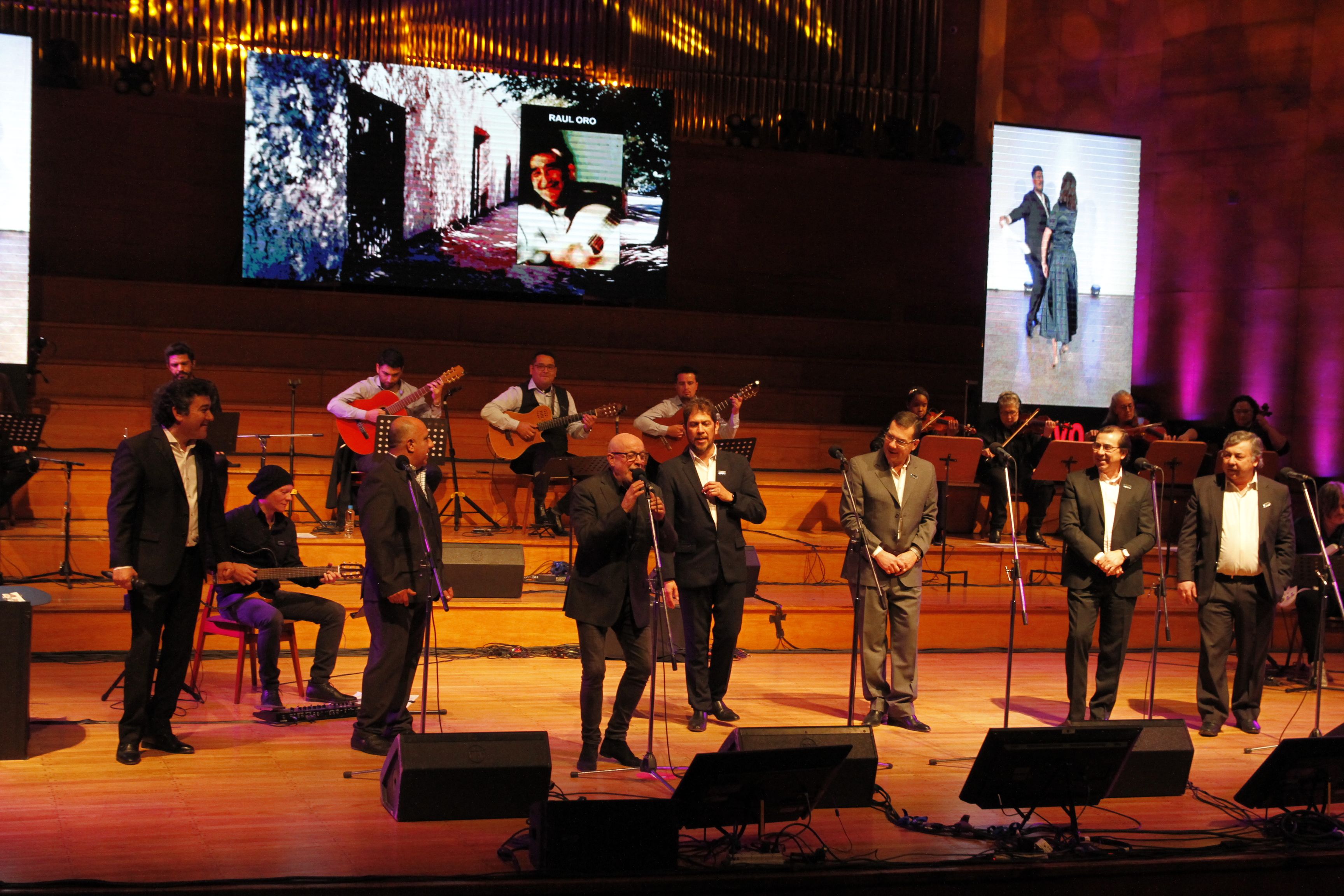 Prolijo y sin pausas, el concierto fluyó con una energía contagiosa; en las pantallas estuvo el homenaje a los autores a través de sus fotografías (para tener bien presentes a los compositores) y también la danza, con Carlos y Cecilia Illanez, Hugo Pujado y Lorena Gelusini bailando en vivo desde el foyer.