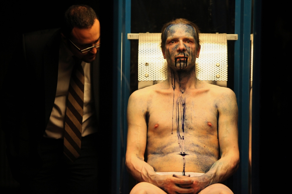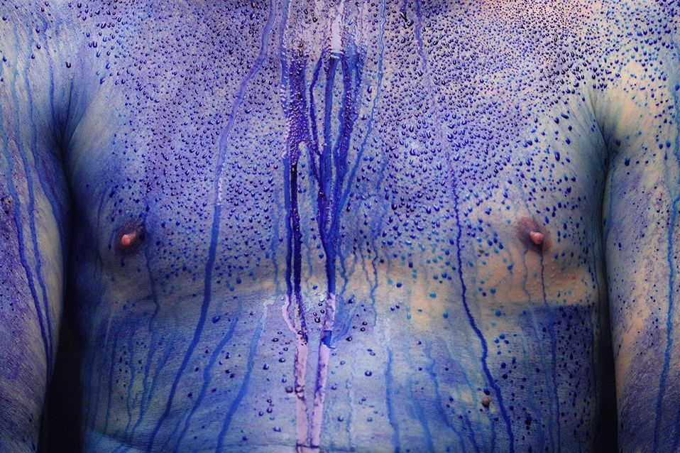 Prácticamente desnudo, inmóvil, sentado en una suerte de sillón reclinado, dentro de una caja de vidrio transparente que llega a tener 80 grados, Yann Marussich respira lentamente. El ambiente en penumbras, su cuerpo iluminado. Pausadamente sus ojos se abren y cierran. Poco a poco comienza a exudar un líquido azul. El fluido sale por sus poros, por su nariz, por su boca, por sus lagrimales, y va "pintando" su cuerpo. La gente lo observa, intrigada. Pero más que el "¿cómo lo hace?" que podrá pasar por muchas cabezas, lo que al reconocido artista francés le importa es lo que propone con eso: compartir un viaje íntimo a través de su propio cuerpo. Esto es Bleu Remix, que el domingo próximo se exhibirá en el Teatro del Bicentenario, en el marco de la segunda Bienal de Performance que se realiza en Buenos Aires, y de la que San Juan es sede nuevamente.