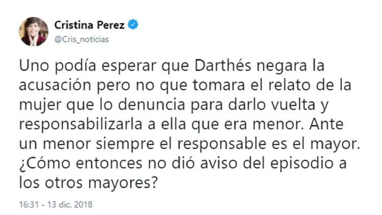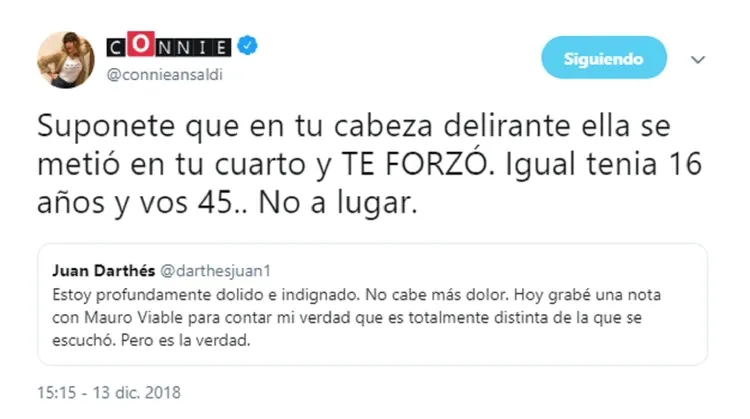 Juan Darthés decidió romper el silencio luego de que Thelma Fardín lo denunciara por haberla violado cuando tenía apenas 16 años y ambos estaban de gira por Nicaragua con Patito Feo. Y, en diálogo con Mauro Viale para A24, dio vuelta el relato de la joven y dijo que había sido ella quien se metió en su cuarto y quiso besarlo. Inmediatamente, los famosos se manifestaron a través de sus redes sociales: