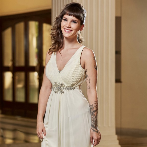 2 – GINA BECERRA: "por una evolución mental y real de nuestra sociedad, porque aunque la ley ampare los derechos de todos no alcanza, dado que aún existen personas que no aceptan". Tiene 21 años, cabello castaño claro y ojos marrones.
