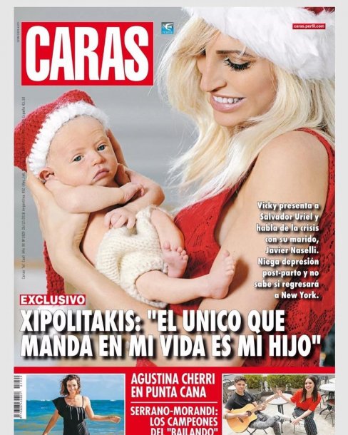 A dos semanas de ser madre y luego del escándalo con su marido Javier Naselli, la griega realizó una producción de fotos con la revista Caras para presentar a su hijo en sociedad.