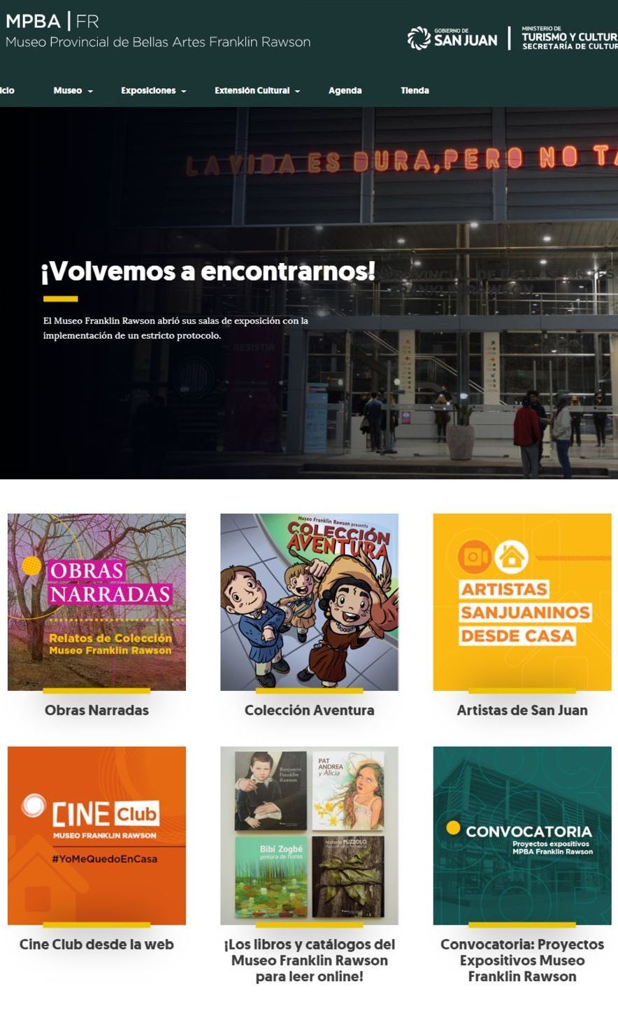 Con la pandemia y el consecuente cierre de salas, debido a los decretos nacionales para prevenir la circulación de Covid-19, dos de los principales centros culturales de la provincia como son el Teatro del Bicentenario y el Museo Provincial de Bellas Artes Franklin Rawson afrontaron la crisis sanitaria, abriendo sus puertas al universo virtual. Los resultados superaron ampliamente las expectativas: Todo un récord, el TB alcanzó las 270 mil vistas sólo en Instagram y Facebook, con contenidos disponibles desde abril; sin contar la actividad en la web con 16.788 visualizaciones en el marco de su nuevo espacio "Del escenario a la pantalla".