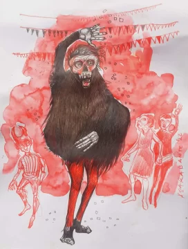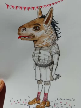 En el taller de Alejandra Carabante, el carnaval no es solo una fecha en el calendario. La artista visual sanjuanina ha hecho de su obra un refugio para aquellos rituales que el tiempo y la modernidad parecen empeñados en desdibujar. Con la publicación en sus redes de su premiada obra “El Carrusel desde la vereda”, volvió a dejar en evidencia su sana costumbre de mirar hacia las raíces de una identidad cuyana que respira entre manchas de tinta y trazos de plumín.