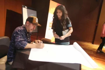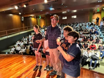 Predispuesto y encantado, Chanti repasó su vida y obra junto a los pequeños, que siguieron encantados cada anécdota del historietista, quien también los animó a subir al escenario y hasta les dio algunos tips para dibujar.