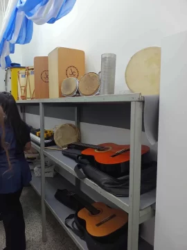 ”Era un lugar que tenía unos archivos viejos y máquinas que estaban en desuso, pero era el único lugar disponible; una lonja que tiene un 1,70 m de ancho y unos 6 m de fondo. Entonces dijimos ‘Bueno, refaccionemos esto, dejémoslo genial y empecemos a pedir colaboración de instrumentos’”, contó Vera.