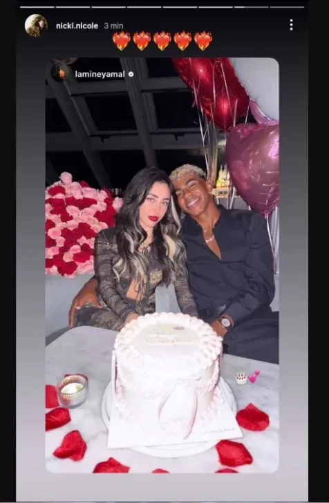 Esta foto romántica la había subido Lamine dos horas antes a su cuenta, donde acumula casi 40 millones de seguidores, por el cumpleaños número 25 de Nicki.