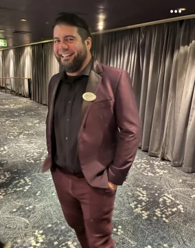Manuel emplea la guitarra eléctrica y dentro de la banda, le ha tocado actuar para la puesta del musical de Broadway “Beetlejuice” y otro show llamado “Iconos”, que es un popurrí de canciones o hits internacionales. Con funciones cada seis días y un franco por semana. Cuando le toca el día libre, es el que más aprovecha para conocer el barco y las ciudades portuarias en cada visita. “Imagináte, del tiempo que llevo todavía no puedo terminar de recorrer todo el barco. Lo bueno que en estos días libres, podemos mezclarnos con los pasajeros, pero ahí se complica a veces porque podés entrar en la zona de compras y ocurren los desastres. Es peligroso porque podés terminar gastándote todo el sueldo en perfumes y ropa, en el shopping”, decía entre risas.