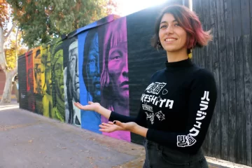 “Estoy muy feliz. Es muy loco porque a esa pared yo la había visto hacía poco en una feria donde estuve vendiendo stickers”, dijo a DIARIO DE CUYO la diseñadora gráfica egresada de la UNSJ. “Estaba ubicada enfrente y pensaba ‘¿Por qué no habrán pintado esta pared?’. Parece que así como lo vi, lo proyecté”, confesó la artista, quien se sumó a la convocatoria que llegó poco después, como si el destino aguardara su pincel.