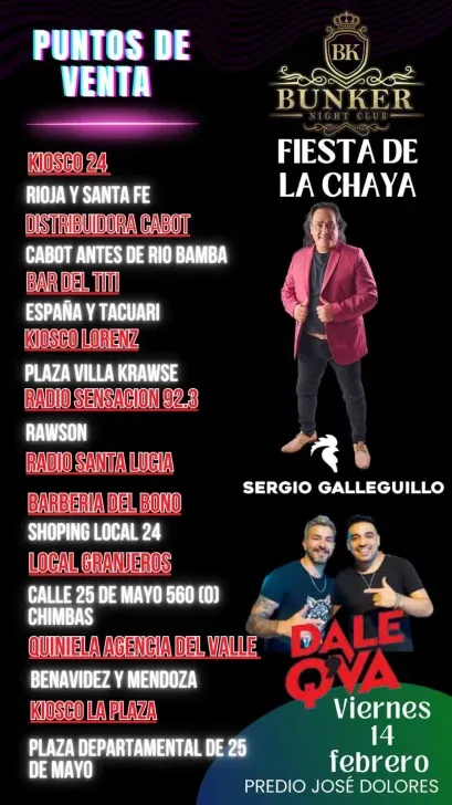 Es que en el Predio Gaucho José Dolores del Médano de Oro se realizará la Fiesta de la Chaya que organiza Bunker con una grilla de artistas imperdible y un mega show de la espuma.