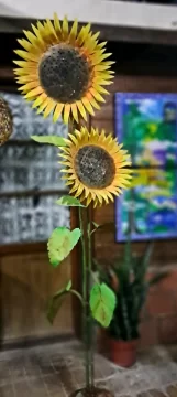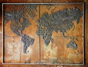 Entre esas piezas, por ejemplo, hay unos girasoles iluminados que miden casi 3 metros, un planisferio de 2 x 1,50 metros hecho a escala, donde cada continente tiene una guarda que lo caracteriza; un rostro de mujer de unos 2 metros, una fuente de agua, un gran guacamayo que simula estar volando y también alguna pieza cinética, “porque el movimiento es como mi sello”. Y un detalle no menor en esta muestra es el color.
