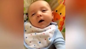 Diario de Cuyo | HOME | Mundo | ¿Un prodigio? ¡Habla con 7 semanas! Este bebé sorprendió a sus padres con su primera palabra, siendo casi un recién nacido. Tras varios intentos, su madre logra que el pequeño diga "hola". Video. Por Redacción Diario de Cuyo 12/03/2015 · 0:00 Ver los comentarios ›