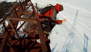Buenos Aires, 8 de julio.- Un joven ruso saltó de una estructura de hierro desde 120 metros de altura, en una peligrosa práctica que consiste en abrir el paracaídas durante la caída. Pero se abrió tarde y sufrió un duro impacto contra la nieve.