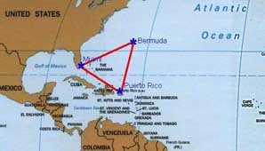 Estados Unidos, 5 de junio.- Gigantescos monstruos marinos, actividades paranormales, objetos voladores no identificados, puertas a otra dimensión del universo, etc. Hasta hoy éstas habían sido algunas de las supuestas causas de las inexplicables desapariciones de buques y aeronaves en un área comprendida entre las islas Bermudas, Puerto Rico y Florida, en los Estados Unidos.