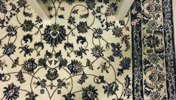 La razón por la que el celular se pierde entre el diseño es porque tiene un estuche de color azul y algunas flores crema que se camuflan fácilmente en una de las franjas de la alfombra.