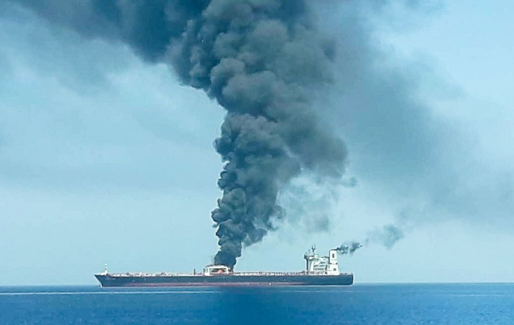 Bajo fuego. Un petrolero arde en medio del golfo de Orán tras un ataque de supuestos piratas. Por el nivel tecnológico mostrado, Trump acuso a Irán de estar detrás de estos serios incidentes.
