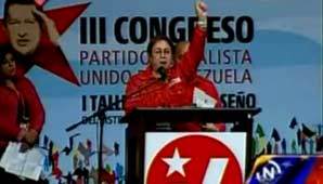 Venga a nosotros tu legado para llevarlo a los pueblos de aquí y de allá ("ahí están los camaradas internacionales", acota la oradora)