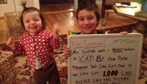 “Oye Facebook, mi hermana y yo de verdad queremos un gato. Nuestro padre promete que podemos tener uno si llegamos a los 1.000 ‘Me Gusta’. Por favor, dale a ‘Me gusta’ en esta foto. ¡Gracias!” era el mensaje escrito por Remi.
