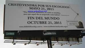 También en el norte de México, el grupo cristiano estadounidense ha hecho llegar su mensaje apocalíptico: "Cristo regresa el 21 de mayo de 2011. La Biblia habla: aullad", dicen dos gigantescos paneles colocados en dos de los más transitados cruces de esta ciudad de 1,2 millones de habitantes vecina de El Paso (Texas).
