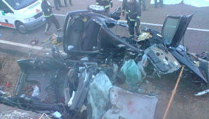 España, 11 de septiembre.- Cuatro jóvenes, un matrimonio y un familiar de éste han resultado muertos en un trágico accidente de carretera, en el que también un niño, de catorce años, hijo de aquellos, ha resultado gravemente herido. El choque frontal ocurrió poco antes de las 6.30 horas, en la carretera comarcal de Extremadura Ex-336, que une los pueblos de Villagonzalo y Oliva de Mérida, al invadir el BMW, ocupado por los jóvenes, el carril contrario, según han confirmado fuentes de la Dirección General de Tráfico.