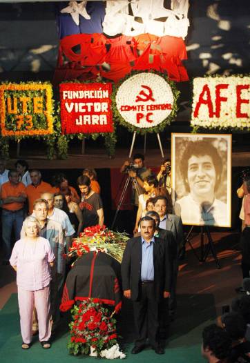 Por la mañana, muchos chilenos se congregaron ayer frente a la sede de la Fundación Víctor Jara, donde se realizó el velatorio. Los familiares y miembros de la fundación quisieron ofrecerle ahora un verdadero funeral, como el homenaje que no pudo recibir cuando fue enterrado en condiciones penosas y semiclandestinas el 16 de septiembre de 1973 (cinco días después del golpe militar).