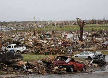El tornado que afectó el domingo a la tarde a la pequeña ciudad de 50.000 habitantes, causó la destrucción ‘del 30% de la ciudad, que ya no existe más‘, dijo el jefe de bomberos, Mitch Randles. El fenómeno afectó a miles de viviendas y al hospital central, desde donde se evacuaron a un centenar de pacientes, quienes fueron asistidos en un campamento improvisado.