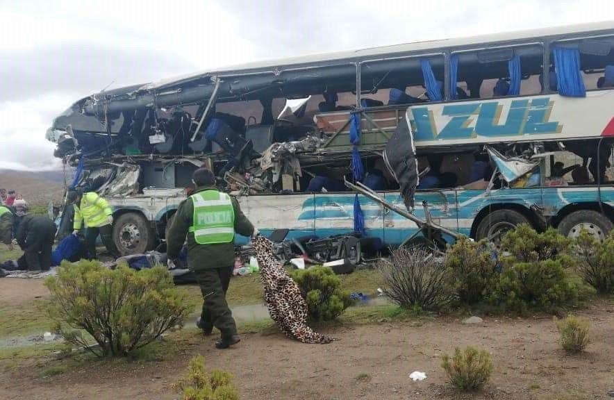 Al menos 22 personas murieron y otras 37 resultaron heridas este sábado tras el choque frontal de dos colectivos en la ruta que conecta a las regiones bolivianas de Oruro y Potosí.