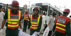 "Aparentemete el ataque suicida provocó que el depósito de gasolina del bus estallara", dijo el jefe de la policía de la ciudad Nasir Durrani.