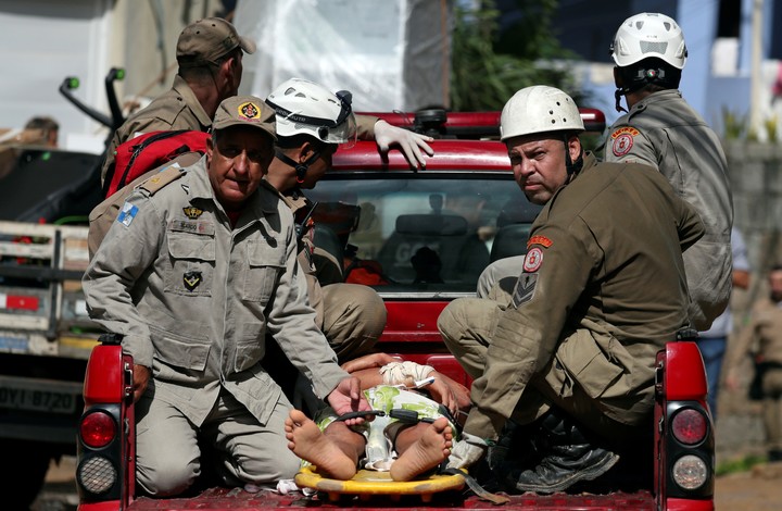 "Estaba en mi habitación, sentí un temblor y fui para el living. El techo se me cayó encima y comencé a bajar la escalera para escapar.", dijo Edvaldo, que vivía en el primer piso de uno de los edificios derrumbados.