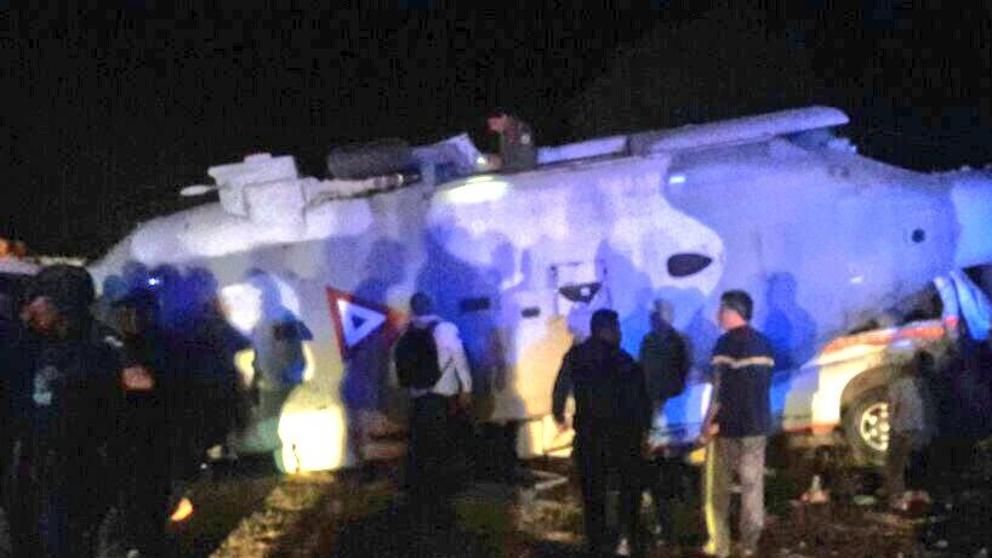 Relató que, tras precipitarse a tierra, el helicóptero volcó y cayó sobre un par de vehículos que estaban estacionados en la zona donde iba a aterrizar. A la vez, precisó que a bordo de la aeronave viajaba personal militar, del gobierno de Oaxaca y de Protección Civil, y que algunos de los ocupantes resultaron heridos, sin precisar su número.