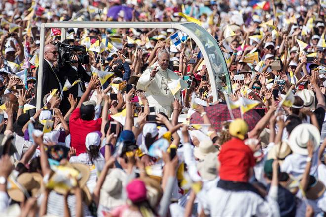 En la ceremonia, a la que asistió el presidente peruano, Pedro Pablo Kuczynski y fieles venidos desde todo el Perú, el Papa volvió a llamar a los peruanos a no ser indiferentes ante los últimos y condenó “la globalización de la indiferencia”.