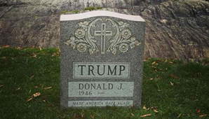 Estados Unidos.- Fotografías de la tumba comenzaron a aparecer en redes sociales el domingo. Estas tenían el nombre de Trump con su año de nacimiento y la fecha de defunción en blanco.