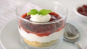 En el video de YouTube, se ve que los ingredientes que se necesitan para una porción son: 100 g. de queso crema bajo en grasas, dos o tres galletas integrales, una cucharada de mermelada sin azúcar, una cucharadita de vainilla y un cuarto de cucharadita de stevia.