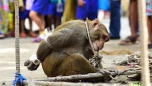 Los monos en India son animales sagrados y respetados de acuerdo a un mito hindú, en el que se explica que un ejército de monos ayudó al legendario héroe Rama a salvar a su mujer del demonio Ravana.