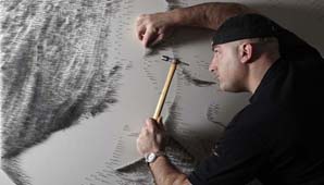 Quizá lo más impresionante sobre el arte de Levine, es que no dibuja nada antes de iniciar a martillar, solo le basta con tener una fotografía en la mano y el resto corre por su cuenta. Una muestra de talento y machísima paciencia, que vale la pena resaltar.