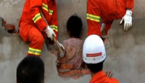 Buenos Aires, 16 de julio.- Un grupo de bomberos al este de China intentan romper un muro a base de mazazos. Conforme el hormigón se va desprendiendo, parece que lo que asoma es la cabeza de una persona.Después de tranquilizarla y darle un poco de agua, con mucho cuidado, tienen que ir rompiendo poco a poco para libera a la mujer que ha quedado atrapada entre las dos paredes.