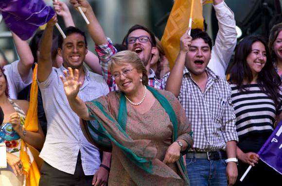 La opositora Michelle Bachelet, de la coalición de centroizquierda Nueva Mayoría, se consagró como la nueva presidenta de Chile al imponerse por más de 24 puntos porcentuales a la oficialista Evelyn Matthei en el balotaje de ayer.