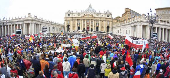 Cantos, aplausos, bailes y banderas procedentes de todos los rincones del mundo, principalmente las rojas y blancas de Polonia, la tierra natal de San Juan Pablo II, inundaron ayer la Ciudad del Vaticano para celebrar la proclamación como santos de los papas Juan XXIII y Juan Pablo II.