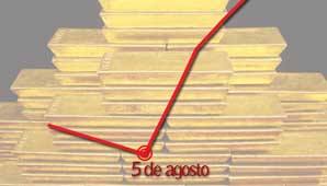 Desde el cierre del viernes último, cuando la agencia Standard & Poor’s anunció la baja de la calificación norteamericana, el precio del metal logró un avance superior a los 130 dólares (ver foto portada) y se posicionó sobre un nuevo máximo histórico.