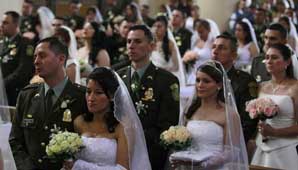 Bogotá, 11 de diciembre.- La Policía organiza matrimonios colectivos una vez al año, por lo general, en el mes de diciembre. "Para nosotros es muy importante la unidad básica que conforma la pareja, su constitución", explicó la teniente coronel Fabiola Bejarano, de la Dirección de Bienestar Social de la Policía y encargada de organizar las bodas.