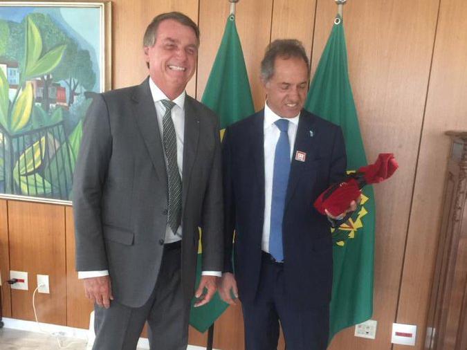 Scioli, según informó la representación diplomática en Brasilia tras la reunión con Bolsonaro, dijo que el presidente del vecino país le manifestó: "Vamos a seguir profundizando nuestra relación y me dio la tranquilidad de que están garantizadas las exportaciones del trigo argentino a Brasil”.