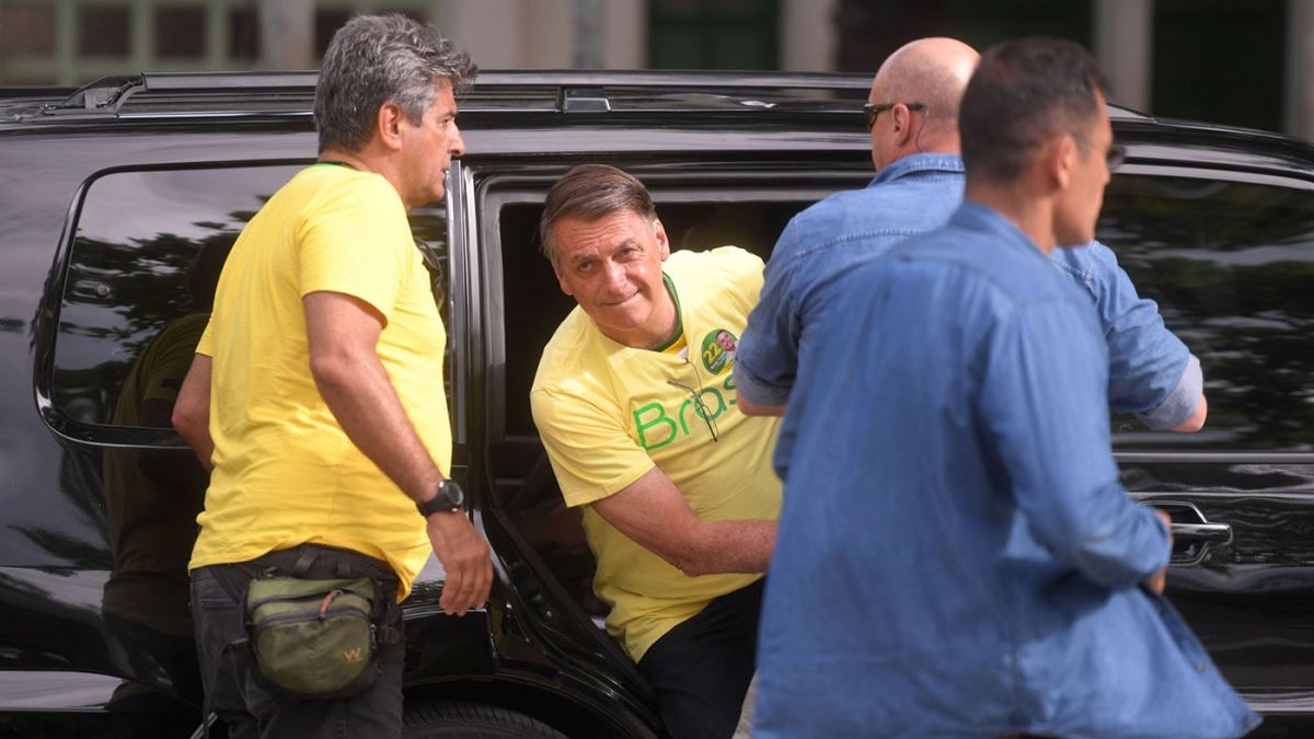 El mandatario de ultraderecha, de 67 años, llegó a la escuela en el barrio Villa Militar, en el oeste de Río de Janeiro, minutos antes de la apertura de las mesas, escoltado por una caravana de autos negros y vestido con la camiseta del seleccionado de fútbol de Brasil.