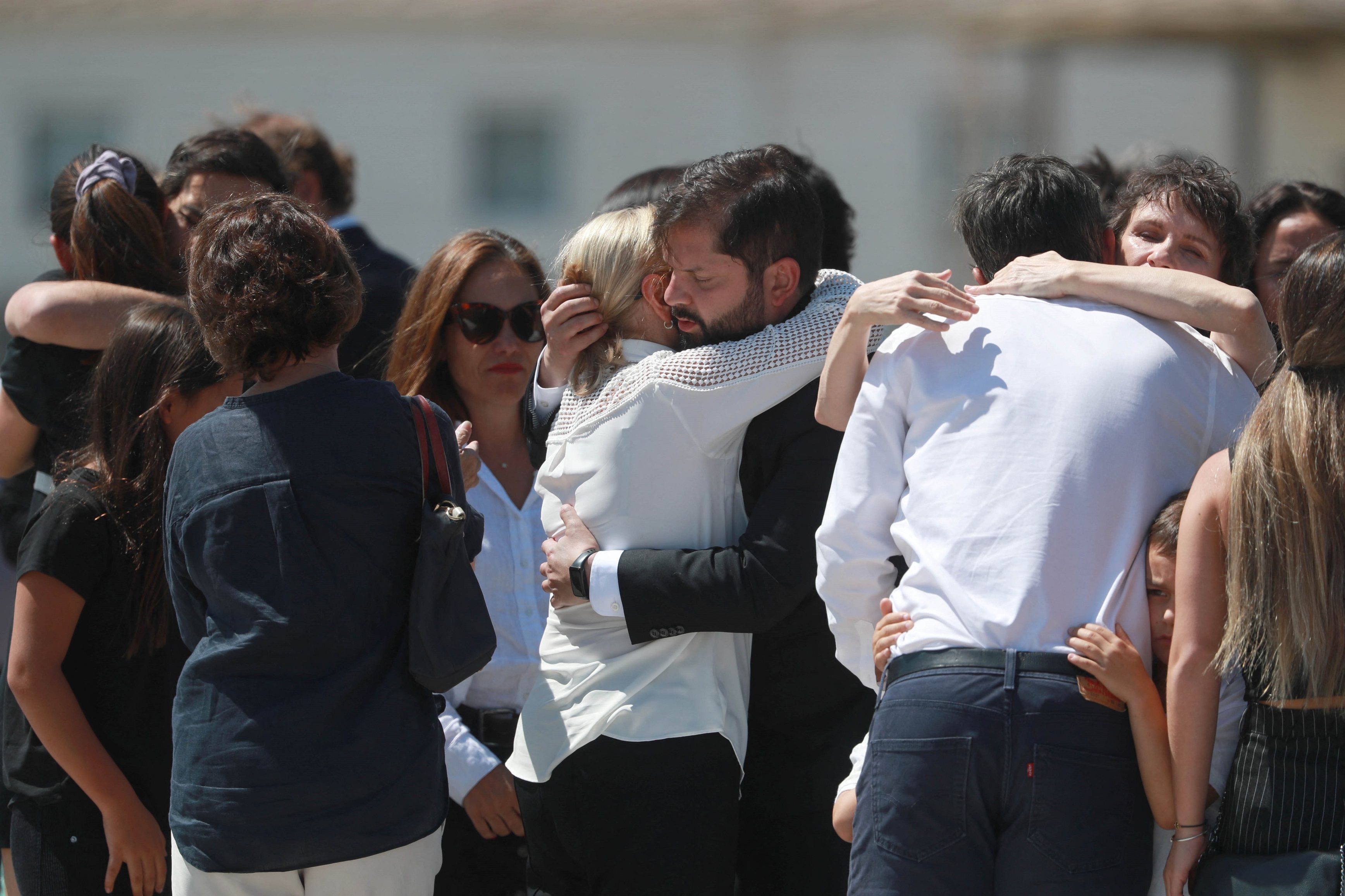 Luego, Boric acompañó a Morel hasta el vehículo en el que fue colocado el féretro que transportará los restos de Piñera hasta el ex Congreso de Santiago, donde primero habrá una ceremonia íntima para la familia y por la tarde se habilitará un velatorio público.