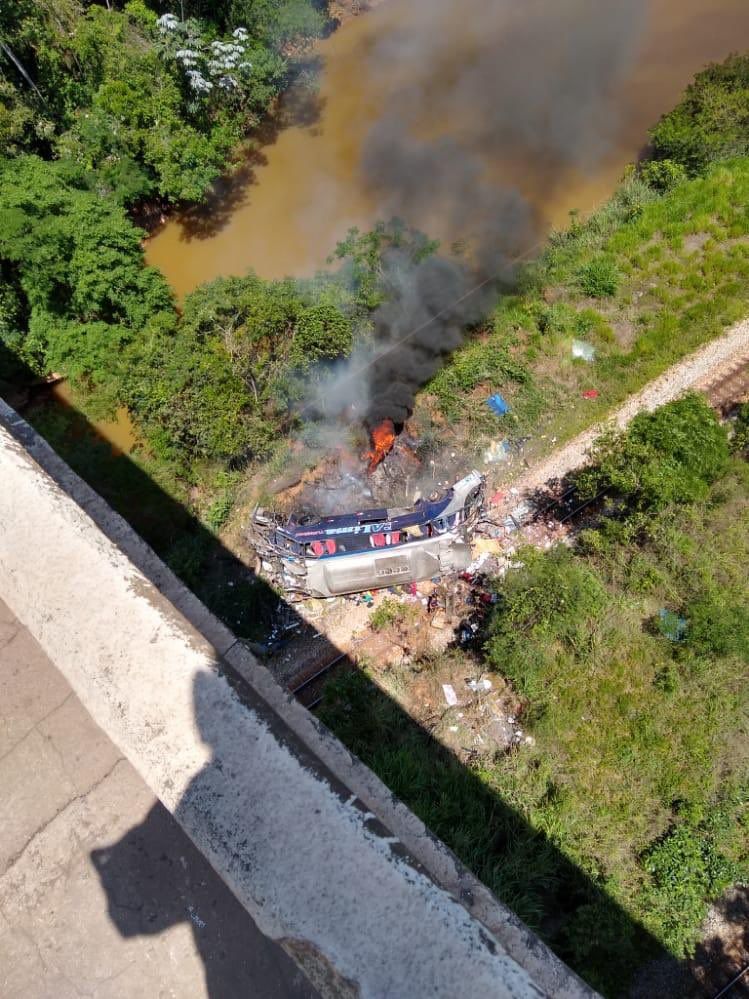Según imágenes divulgadas por TV Globo, el impacto del autobús contra una vía ferroviaria que pasaba por debajo del puente generó un pequeño incendio externo que rápidamente fue extinto por los cuerpos de bomberos que fueron hasta el local para socorrer a las víctimas.