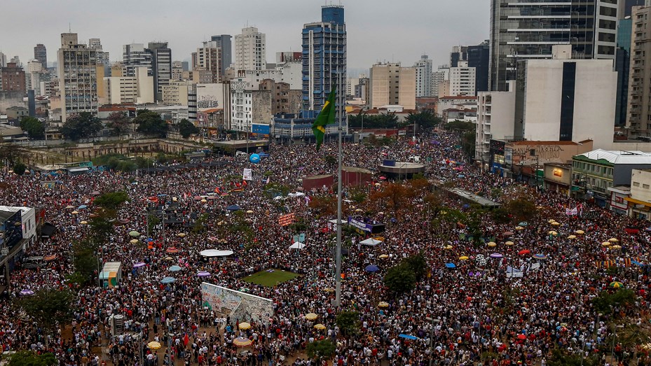 Con música, camisas lilas, pegatinas de #EleNao en el pecho y en algunos casos portando banderas de distintos partidos, la protesta se extendió por decenas de ciudades. En Sao Paulo, la multitud, formada principalmente de mujeres jóvenes, cubrió la explanada de Largo da Batata.