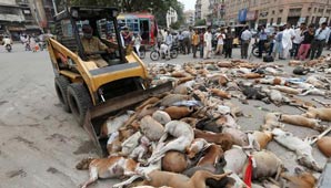 Los cuerpos de los animales asesinados fueron amontonados en distintas esquinas de la ciudad para ser recogidos por el servicio de limpieza.