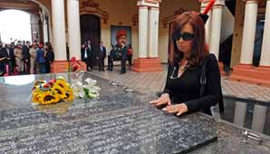 La presidenta había llegado a las 11.30 (hora local) al lugar y pidió permanecer algunos minutos sola frente a la tumba que guarda los restos de Chávez, y luego junto a la primera dama, Cilia Flores, recorrió la capilla y una muestra fotográfica que está montada en el lugar.