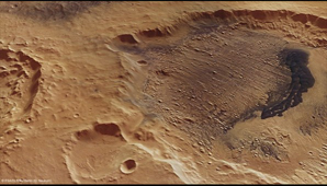 Alemania 18 junio.- Las imágenes muestran los cráteres Danielson y Kalocsa en la región de Arabia Terra de Marte y fueron tomadas durante el pasado verano. El cráter Danielson, de unos 60 kilómetros de diámetro, está relleno de material sedimentario que ha sufrido una fuerte erosión con el paso del tiempo. En su interior se pueden distinguir unas formaciones rocosas conocidas como yardangs, así como un campo de dunas, de color más oscuro, que los atraviesa.