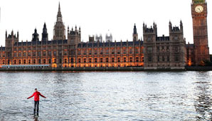 Buenos Aires, 28 de junio.- Steve Frayne es un mago británico de 28 años conocido por sus increíbles trucos. Pero, recientemente, el mago, que se hace llamara Dynamo, cruzó caminando el Río Tamesis, justo al Parlamento de Londres.