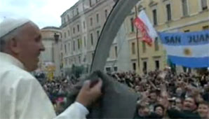 Al término de la ceremonia, Francisco hizo el tradicional recorrido por Plaza San Pedro y se encontró con una bandera Argentina con la leyenda “San Juan”, pudiendo identificar a la comitiva local.